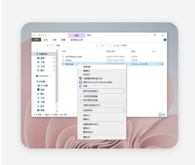 第一步:先解压win.zip压缩包,然后运行Win文件夹内的>Win.bat(注意:路径和文件夹名字不要有中文)