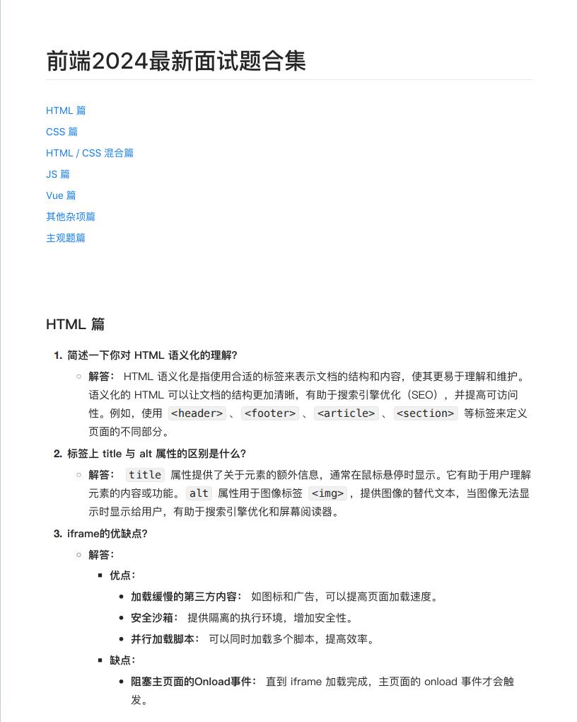 解答: HTML 语义化是指使⽤合适的标签来表示⽂档的结构和内容,使其更易于理解和维护。