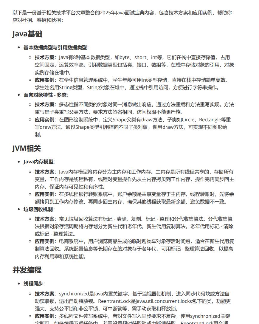 技术方案:Java有8种基本数据类型,如byte、short、int等,它们在栈中直接存储值,占用