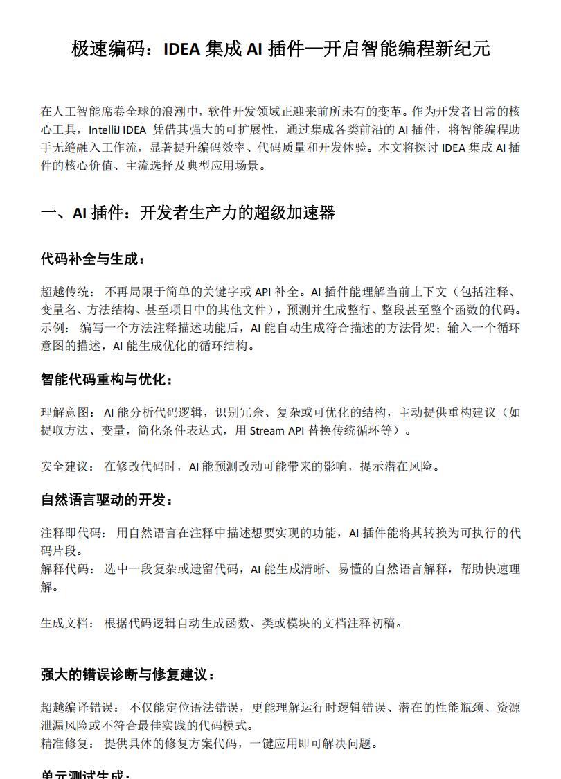 一、AI 插件:开发者生产力的超级加速器
